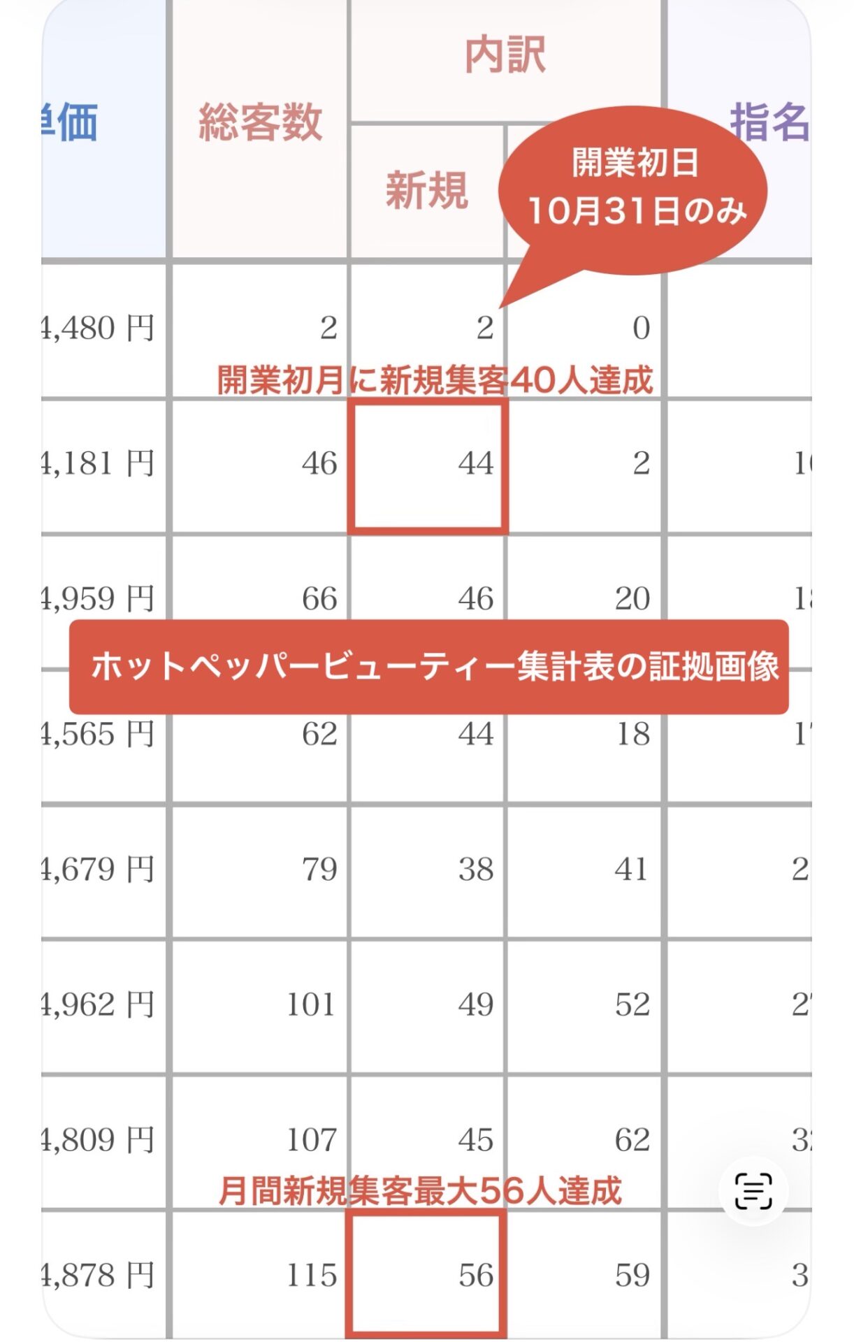 リピーター(再来客・固定客)が多数の為、現在は新規集客数は10名前後です。